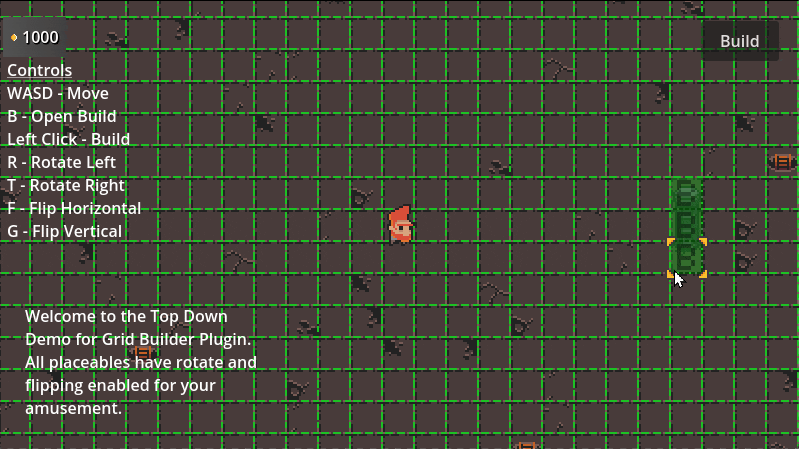 This update adds a lot of functionality to the building of objects in the plugin. Each feature is enableable on the system and per placeable basis. If you want flipping, rotating, etc for your game you will want to set actions on the building system node. (Conversely, if you don't need them, keep them disabled by simply providing no action). Each buildable must also be set with whether it is rotatable, flippable horizontally, and flippable vertically. Check the updated demos for examples of how these can work